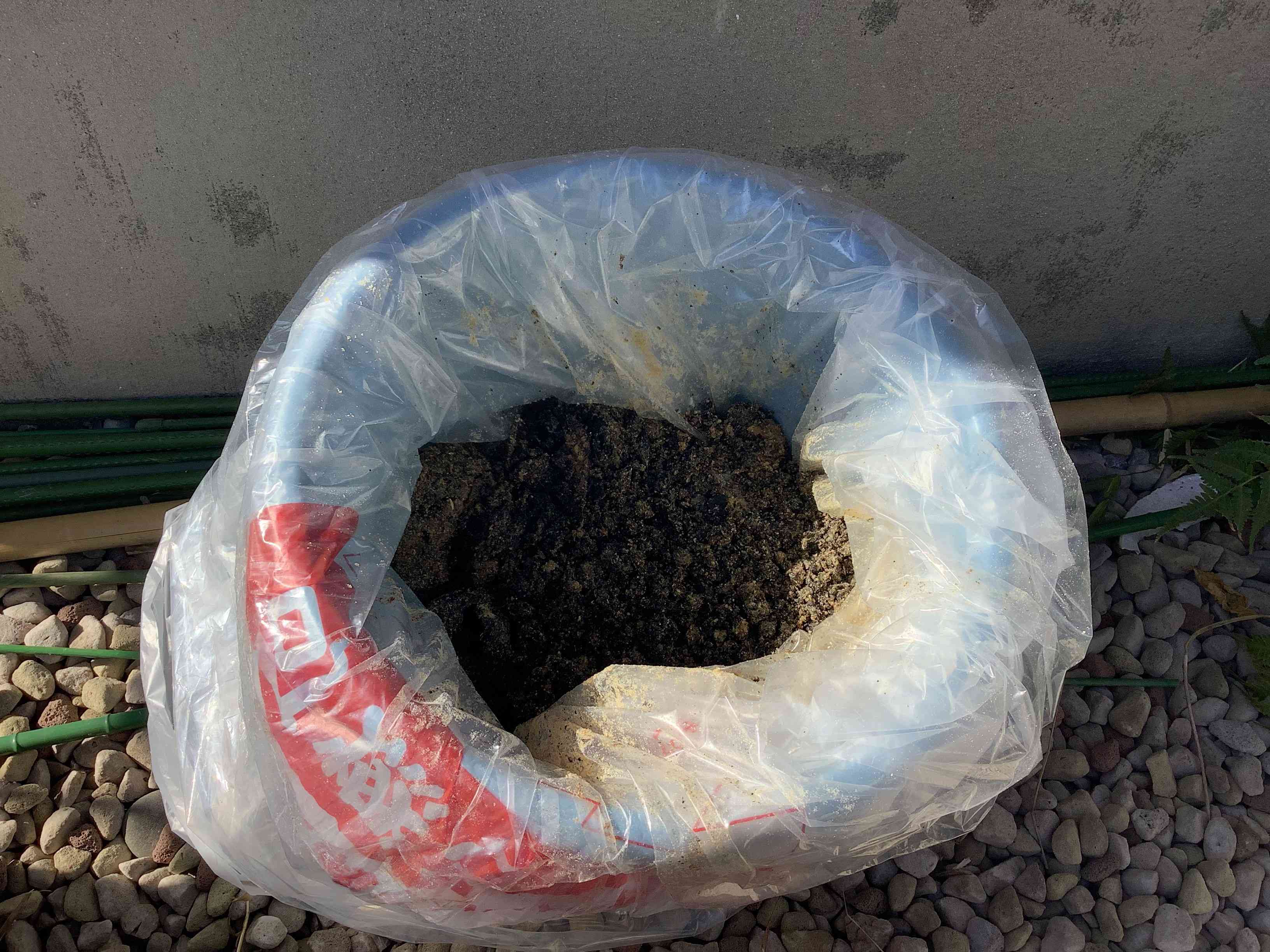 昨日の調理実習ではたくさんの油を使いましたが、ただ捨ててしまうのはもったいないです。そこで今日は使い終わった油を畑の肥料に変える実験を行いました。 材料は1.使い終わった揚げ油 2.米ぬか 3.土 4.納豆を混ぜた水 5.BBQで使い終わった炭 です。 1~4はインターネットにも紹介されている材料でしたが、実験で5も混ぜてみます。 バケツにビニールを敷いて材料を順番に混ぜ合わせます。 ここから二か月間、時々様子を見ながら菌の力で油を肥料に変えていきます。 上手くいけば毎年一回は揚げ物の調理実習を行い、それを肥料にして畑の作物を育てていければいいと思っています。【添付ファイル】