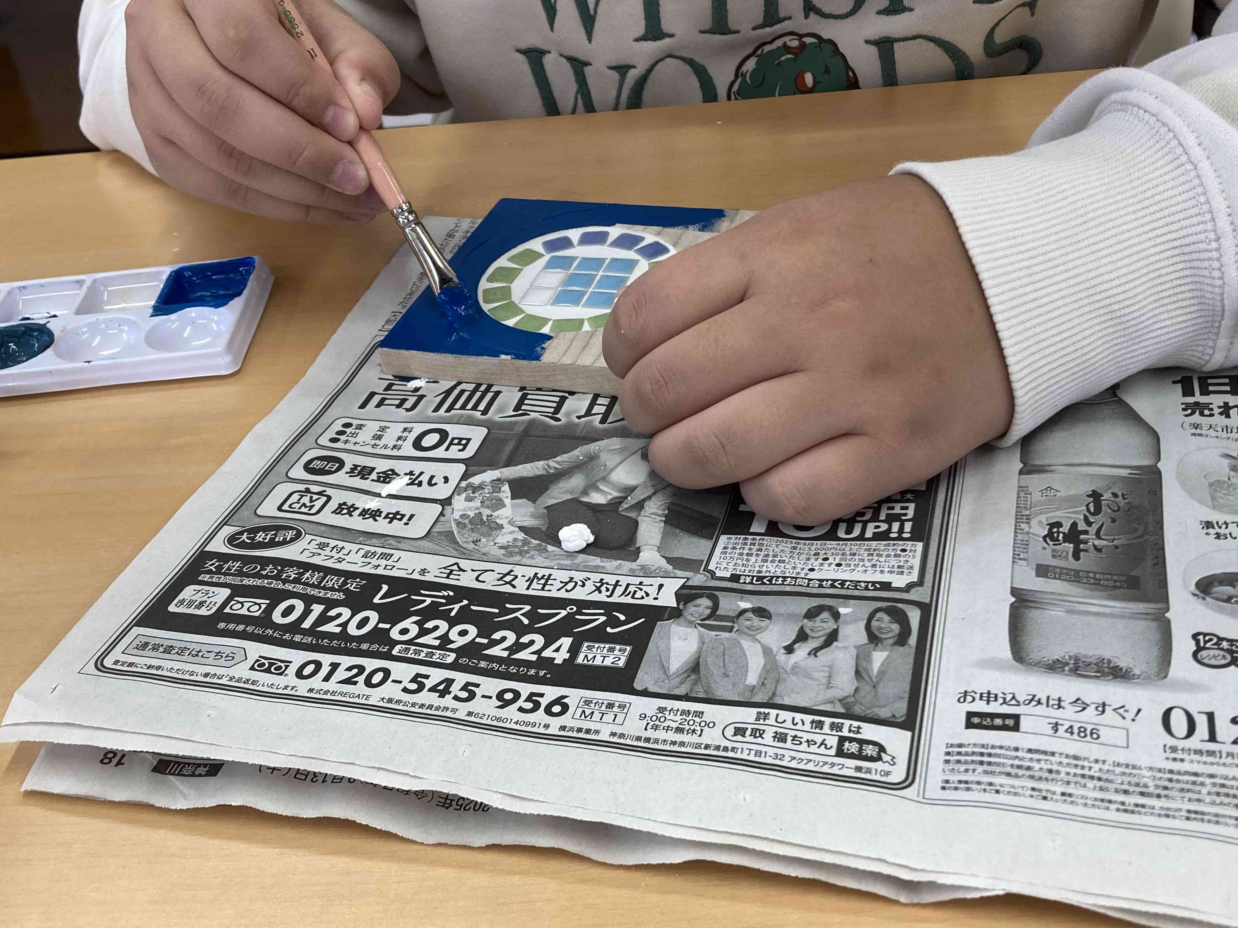 今日は午前中2時間の教科学習の後、明日の調理実習の準備を行いました。畑のほうれん草を収穫し、根っこをよく洗ってから茹でてペーストにします。明日、これを麺に練り込む予定です。 その後、モザイクタイルとソーラーカーの作成を行いました。これは3学期の学習発表会で展示する予定です。